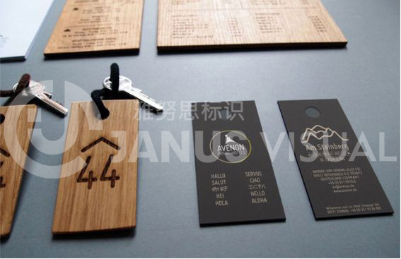 酒店標識牌是一種應(yīng)用于酒店的廣告標牌。酒店標識系統(tǒng)是根據(jù)酒店整體設(shè)計風格為導(dǎo)向,綜合解決酒店方向性引導(dǎo),視覺識別等運行功能為前提配合酒店整體工程項目實施的其中一部分工程。主要用以突出酒店的風格特色,主要制作材質(zhì)以紅木、金屬(銅、鐵、鋁、錫、鈦金、不銹鋼)為主,制作工藝較為復(fù)雜,選用材質(zhì)也很多。按照功能來劃分,酒店標牌分大堂指示牌(如收銀)、樓層指示牌、門號牌、功能指示牌、時鐘指示牌、告示牌、房價牌、外幣兌換牌等。